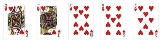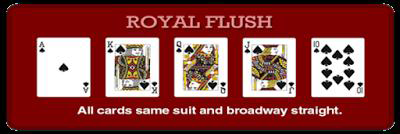 Merupakan urutan kombinasi kartu poker dengan nilai tertinggi dimana kelima kartu memiliki corak dan motif yang sama dan terdiri dari kartu As, King, Queen, Jack dan kartu 10.